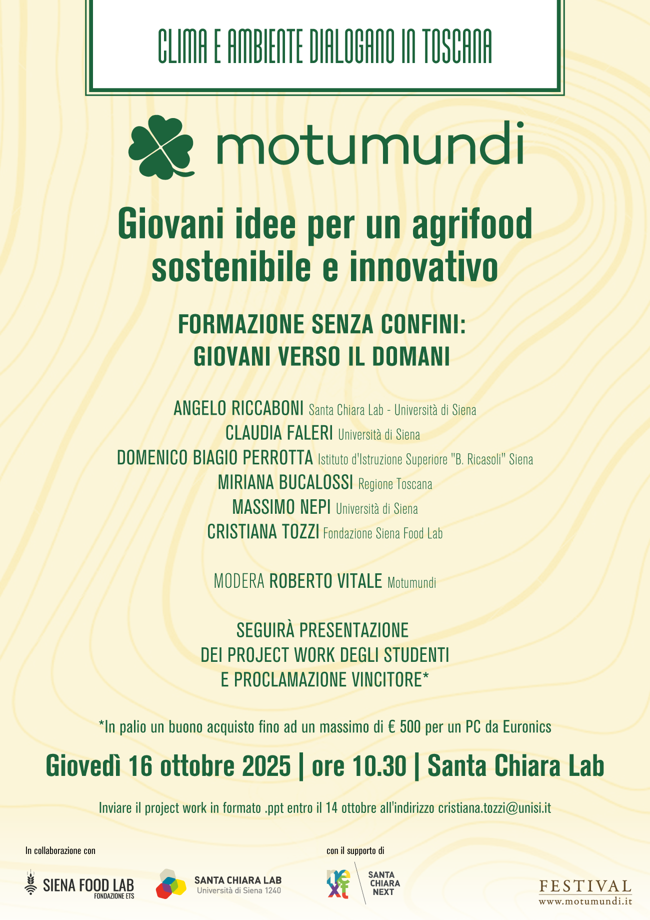 Il 16 ottobre 2025 alle 10.30 al Santa Chiara Lab partecipa all’evento di Motumundi, dedicato ai giovani e al loro ruolo nel cambiamento del settore agrifood.